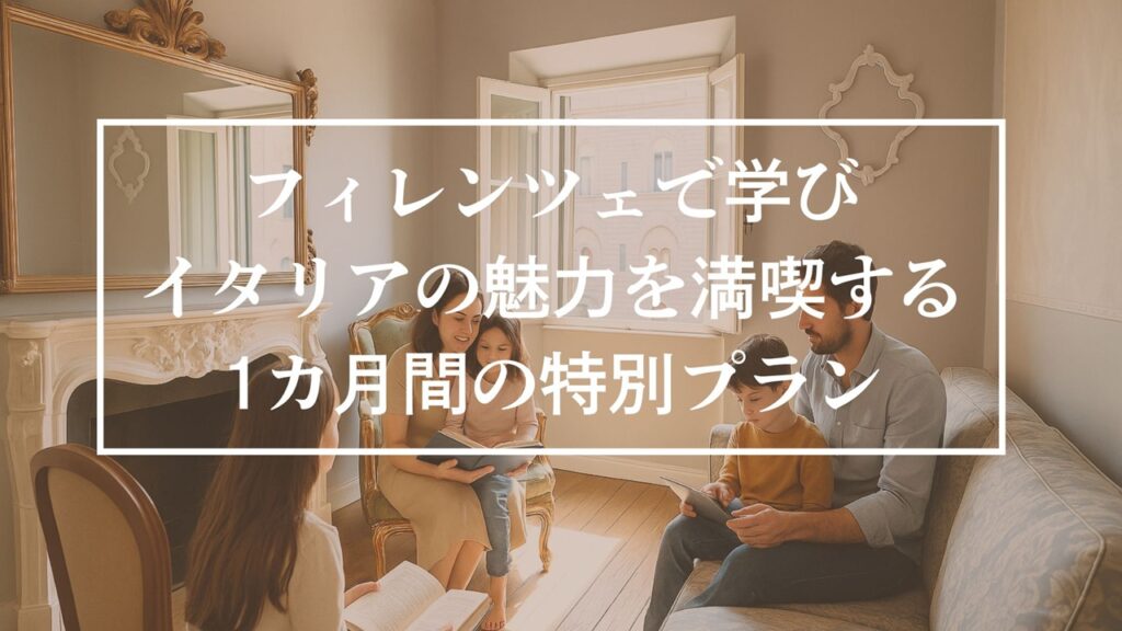 ご家族で過ごす、学びとリラックスの至福の1ヶ月 イタリア・フィレンツェの美しい高級住宅街で、充実した学びの時間とイタリア文化を堪能する1カ月の特別プラン。お子様にとっては、学校の勉強を続けながら美術館巡りや食文化を楽しめる絶好の機会です。 高級アパートメントのご紹介 ピッティ広場に面した落ち着いた高級住宅街に位置する当アパートメントは、治安が非常に良く、貴族も住む歴史的なエリアです。静かで安全な環 … 続きを読む フィレンツェで学び、イタリアの魅力を満喫する1カ月間の特別プラン